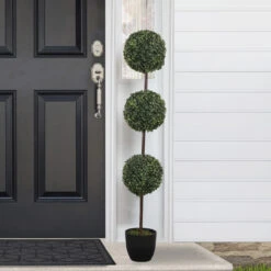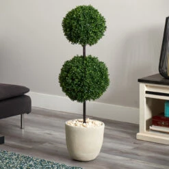 4′ Artificial Boxwood Double Ball Topiary Outdoor Tree In Oval Planter