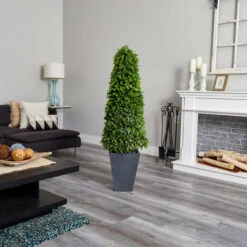48″ Tall Artificial Cone Green Boxwood Topiary Tree With Round Pot