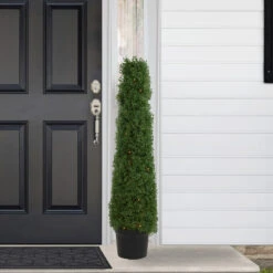 4.5′ Pre-Lit Artificial Cedar Spiral Topiary Tree In Urn Style Pot, Clear Lights
