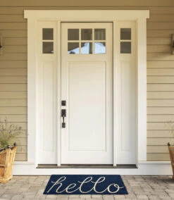 18″ X 30″ Blue And Beige Rectangular Durable And Non-Slip Doormat With “Navy Hello” Design