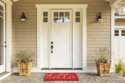 18″ X 30″ Red And Beige Rectangular Durable And Non-Slip Doormat With “Coral Hello” Design