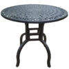 Blue and white color pallet, the black iron frame helps the color of this table pop, bringing out the brightness of the table