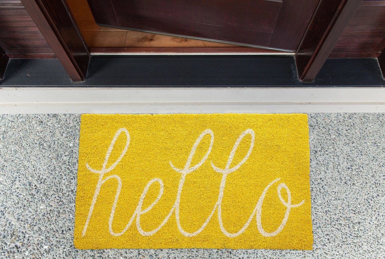 Doormat with Yellow Hello design