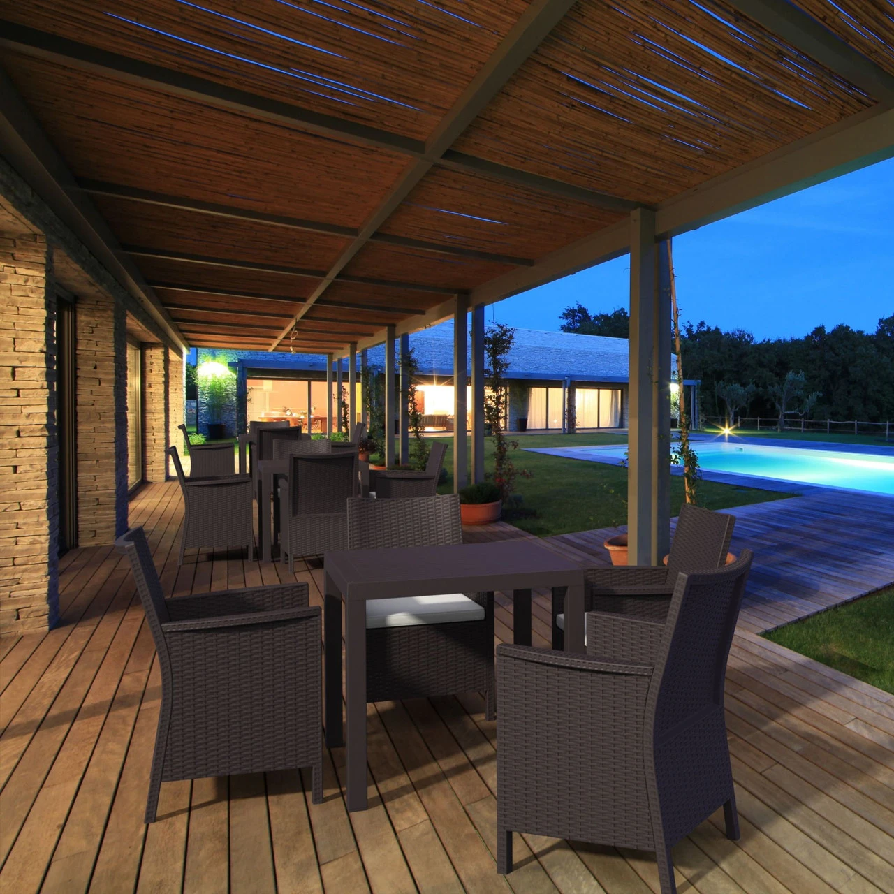 Coffee brown square outdoor dining table