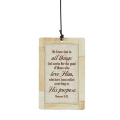Showcases the words from Roman 8:28 on both sides