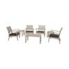 Set includes 2 club chairs, 2 ottomans, and 1 table