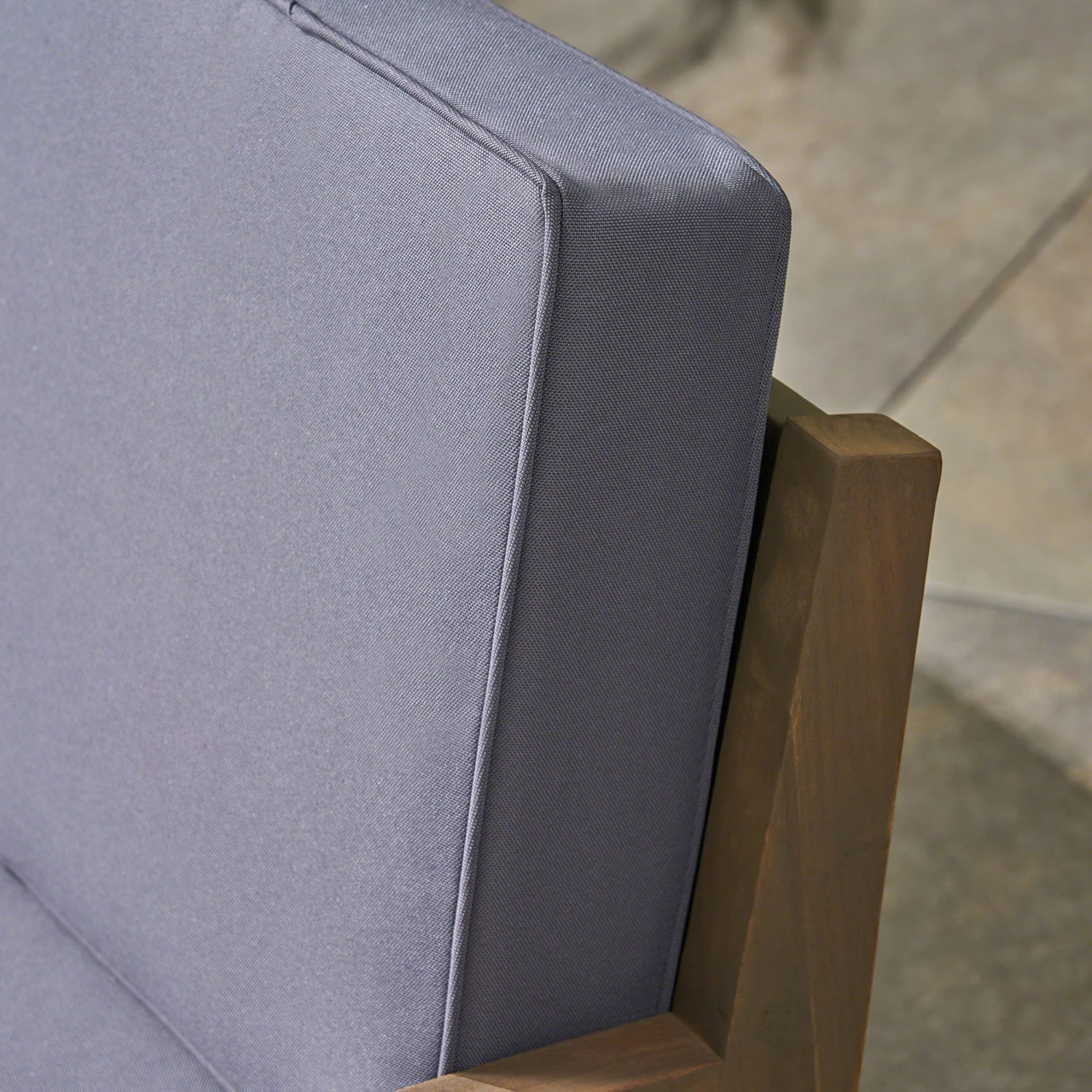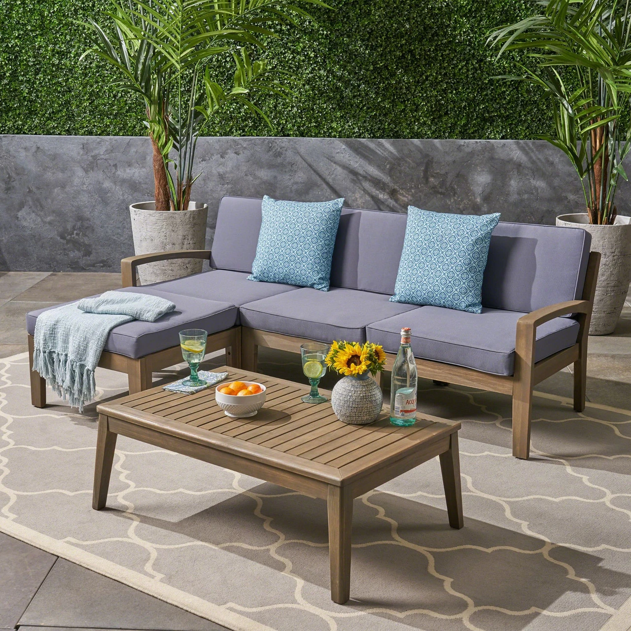 Water-resistant cushions on top of sectional sofa set and ottoman