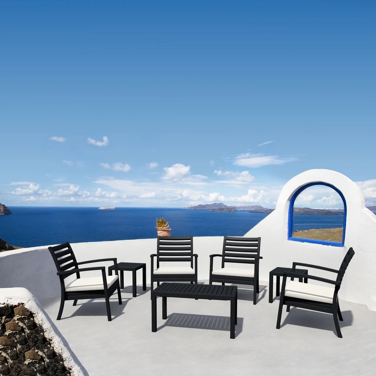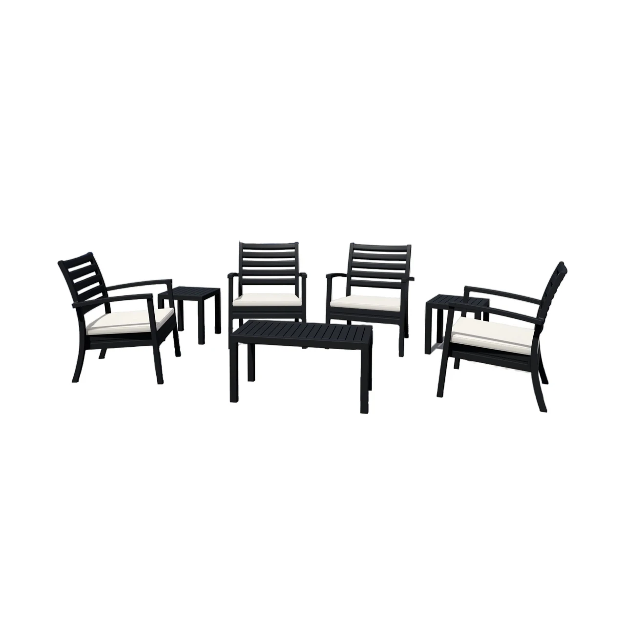 7-Piece Black And Cream White Outdoor Patio Seating Set With Cushions 36″