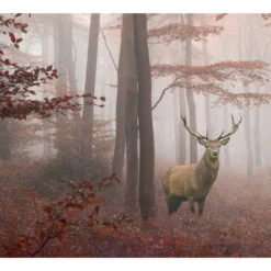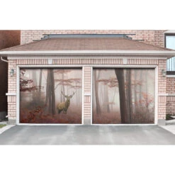 Features a deer in the woods printed door banner