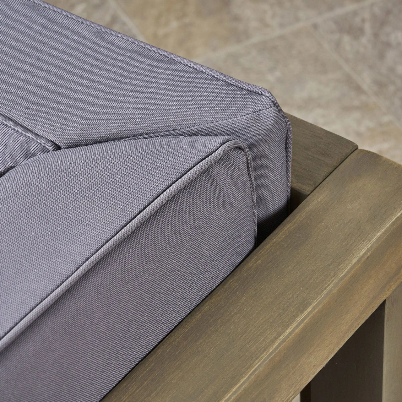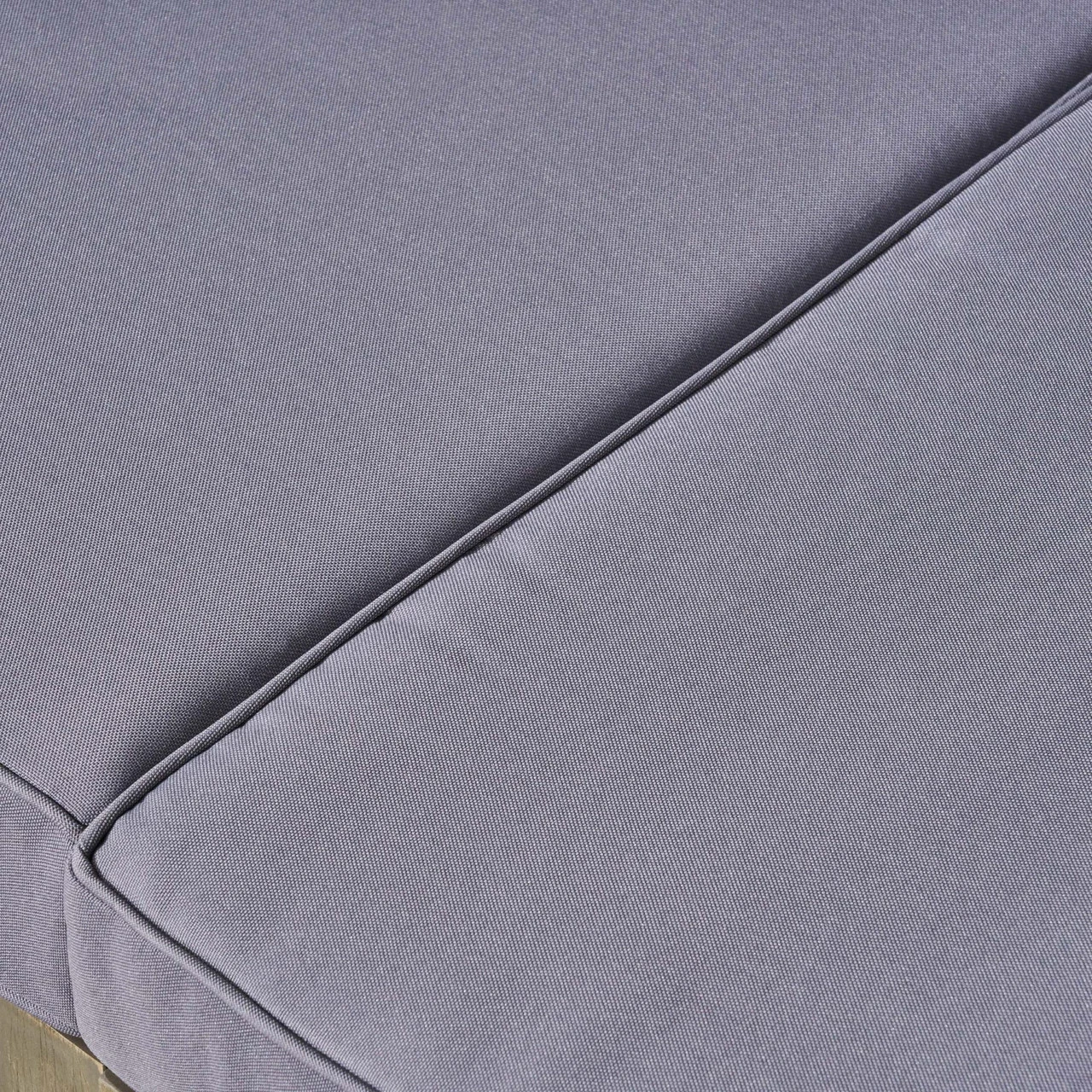 Seating element is generously cushioned with water-resistant fabric