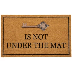 Printed with “is not under the mat” under a copper key accent