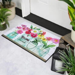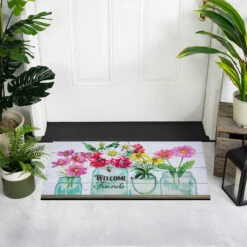 Rectangular doormat reads “Welcome Friends”